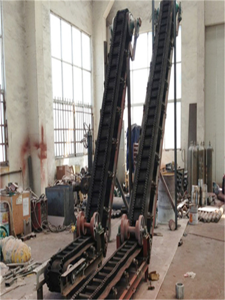 擋邊帶式輸送機其結(jié)構(gòu)是在平行橡膠運輸帶兩側(cè)黏上可自由伸縮的橡膠波形式的裙邊,在裙邊之間又粘有一定強度和彈性的橫隔板組成匣型斗,使物料在斗中進行連續(xù)輸送。擋邊帶式輸送機可廣泛用于煤炭、糧食、建材、化工、水電、和冶金等部門,在環(huán)境濕度為19°-+40°范圍內(nèi),輸送堆積比重為0.5-2.5t/m3的各種散裝物料。對于輸送有特殊要求的,如:高溫、酸、堿、油類物質(zhì)或有機溶劑等成分物料,采用特殊的擋邊輸送帶。