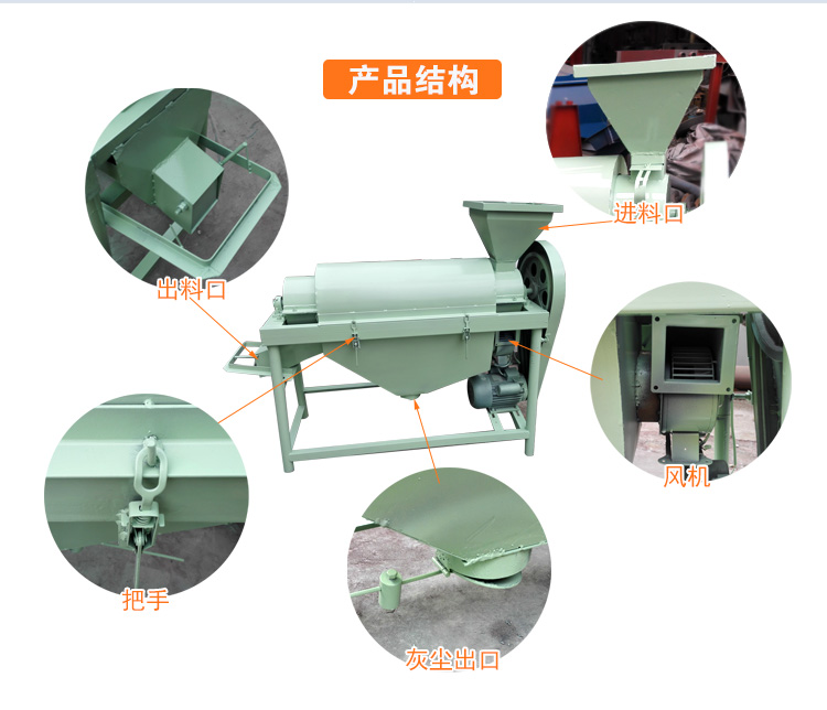 進(jìn)料口里面有一個調(diào)節(jié)擋板可以調(diào)節(jié)物料進(jìn)入多少。出料口為了配合裝袋我們上面有袋子的掛鉤,當(dāng)然出料口可以根據(jù)您的實際情況進(jìn)行定做,風(fēng)機(jī)就是將水稻芒還有灰塵等輕小物料直接吹出來,電機(jī)我們采用的是全銅線圈電機(jī),耐用,質(zhì)量好。