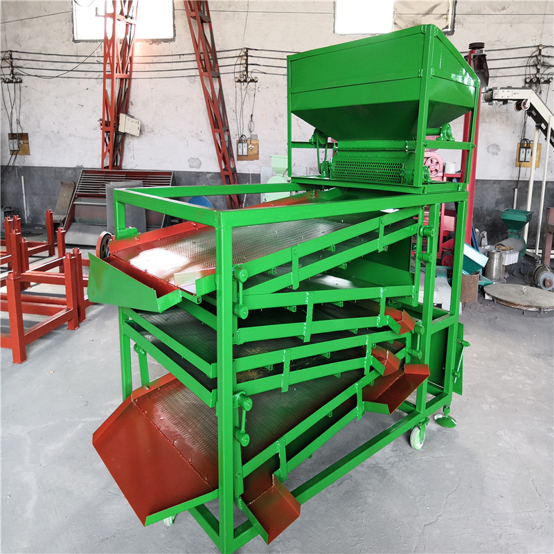 花椒除雜篩是利用打碎分離+篩選的方式進(jìn)行花椒打把脫粒篩選處理,原枝花椒放進(jìn)進(jìn)料斗后把花椒把打下來(lái),花椒籽從殼里打出來(lái),通過(guò)下料器落到篩面上篩選,一層篩選出來(lái)的梅花椒和大的花椒枝葉----二層是花椒籽,會(huì)落到風(fēng)機(jī)口進(jìn)行二次風(fēng)選----三層進(jìn)行復(fù)試篩選----四層是成品椒殼,可以直接打包,我們都知道花椒篩分機(jī)都是上下篩,下篩篩出來(lái)的花椒枝葉,以前十幾個(gè)人干的工作,現(xiàn)在只需一人就能完成,篩選凈度高,產(chǎn)量也大。