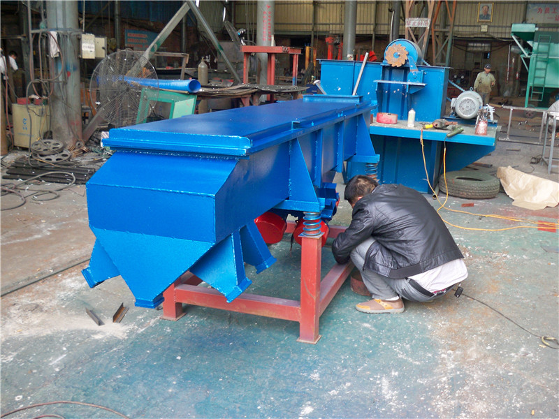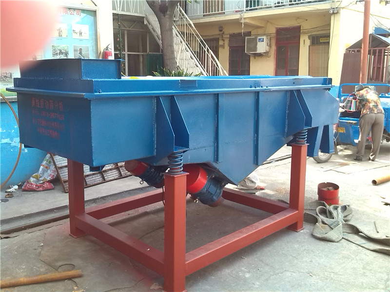 直線振動(dòng)篩采用雙振動(dòng)電機(jī)驅(qū)動(dòng),當(dāng)兩臺(tái)振動(dòng)電機(jī)做同步、反向旋轉(zhuǎn)時(shí),其偏心塊所產(chǎn)生的激振力在平行于電機(jī)軸線的方向相互抵消,在垂直于電機(jī)軸的方向疊為一合力,因此篩機(jī)的運(yùn)動(dòng)軌跡為一直線。其兩電機(jī)軸相對(duì)篩面有一傾角,在激振力和物料自重力的合力作用下,物料在篩面上被拋起跳躍式向前作直線運(yùn)動(dòng),從而達(dá)到對(duì)物料進(jìn)行篩選和分級(jí)的目的。可用于流水線中實(shí)現(xiàn)自動(dòng)化作業(yè)。具有能耗低、效率高、結(jié)構(gòu)簡(jiǎn)單、易維修、全封閉結(jié)構(gòu)無粉塵溢散的特點(diǎn)。篩分目數(shù)400目,可篩分出7種不同粒度的物料。