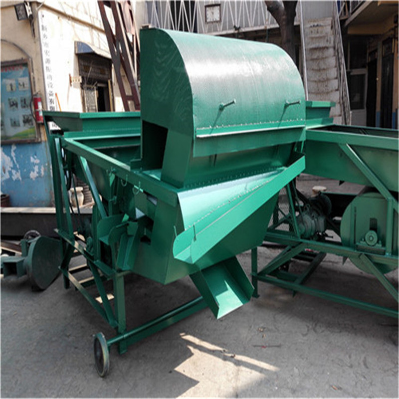 該清選機(jī)含有三層篩網(wǎng),工作時(shí)先經(jīng)過(guò)一層篩, 把原糧中比所需篩選物大的的雜質(zhì)、葉子、泥塊等雜物分離出來(lái),再經(jīng)過(guò)二層篩網(wǎng)經(jīng)好糧分離開,剩下三層篩網(wǎng)所篩物料即是比好糧小或碎的一些其他雜物。注:再好糧篩出過(guò)程中,經(jīng)過(guò)機(jī)器本身自帶風(fēng)機(jī)風(fēng)選出比較輕的灰塵雜物,好糧由前端的出來(lái)口排出。